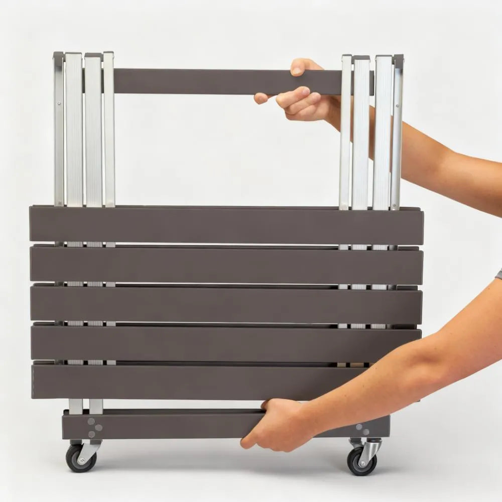 This folding camp table features a unique one-piece construction, comfortably seating up to 4 people. When finished, it folds down completely flat for compact storage. A perfect choice for tailgating, picnics, and camping, its streamlined design makes it ideal for any outdoor activity.